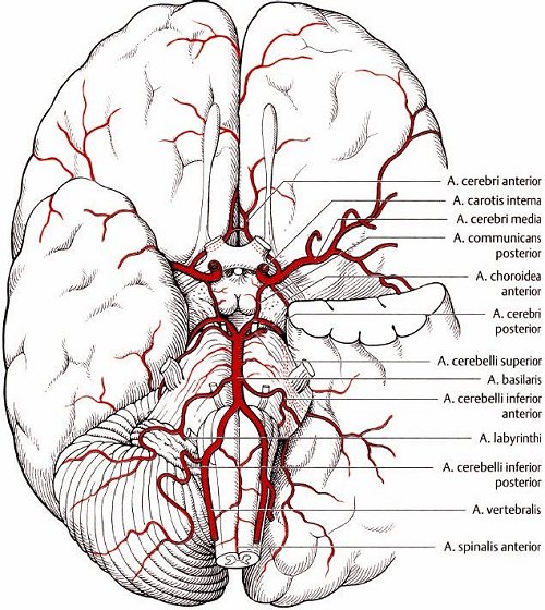 A. cerebri posterior A. basilaris, A. carotis interior),